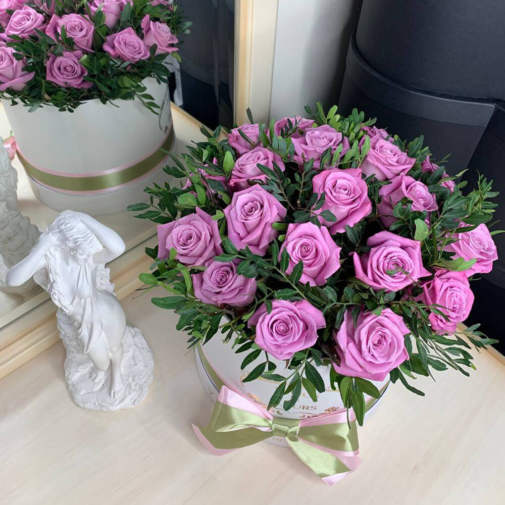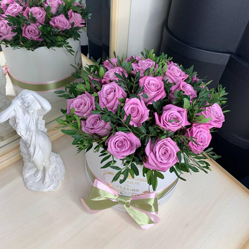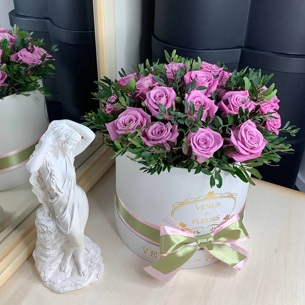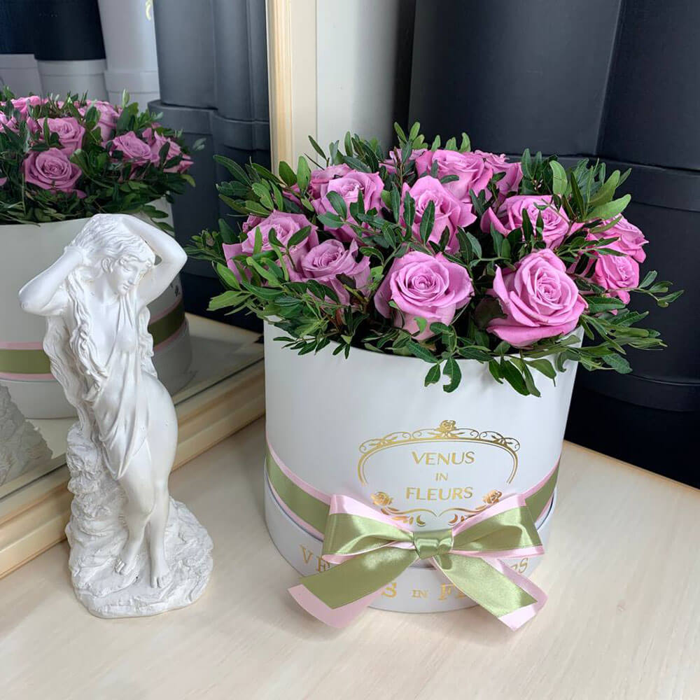 - белая коробка ручной работы, атласные ленты, флористическая губка