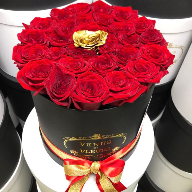 - черная коробка ручной работы, атласные ленты, флористическая губка