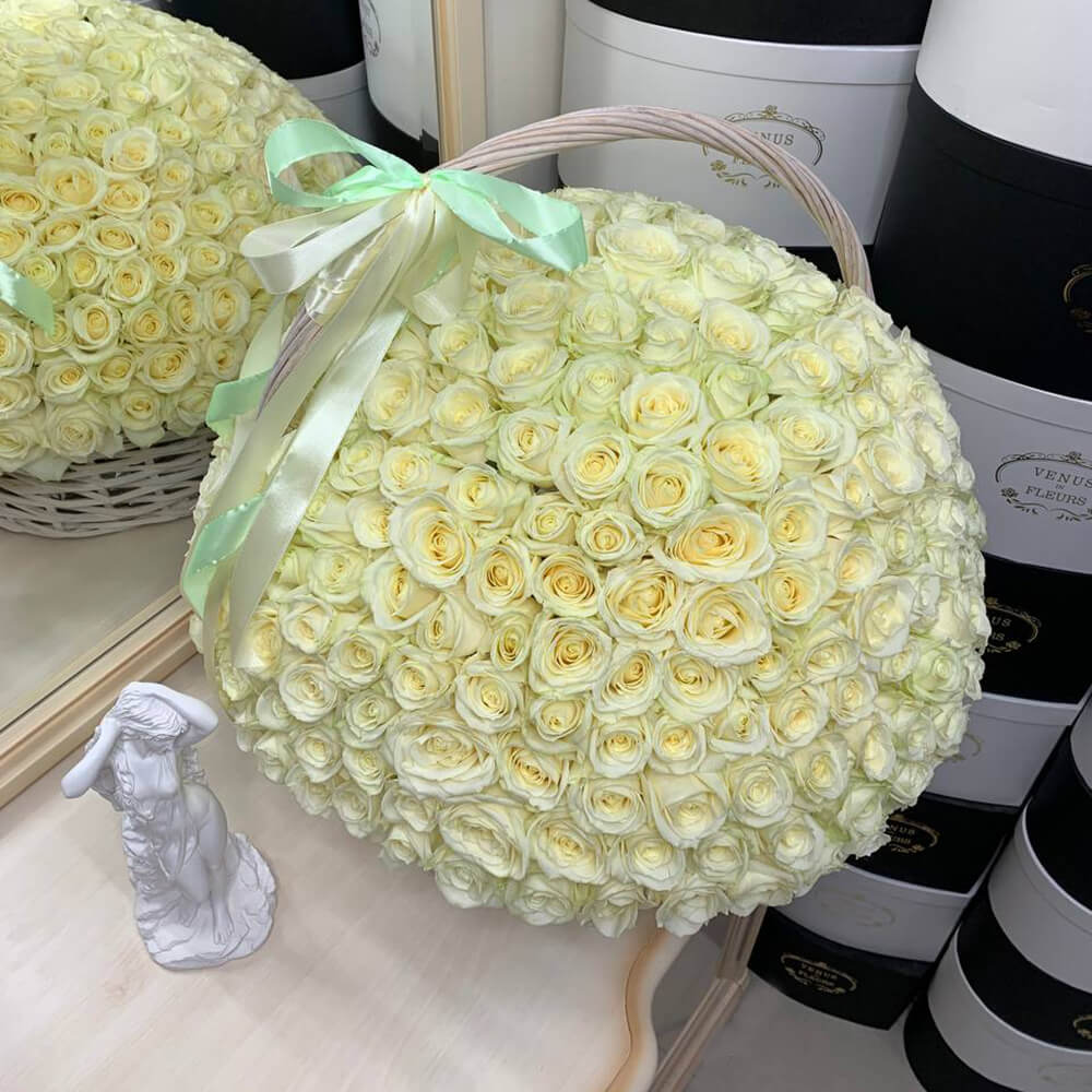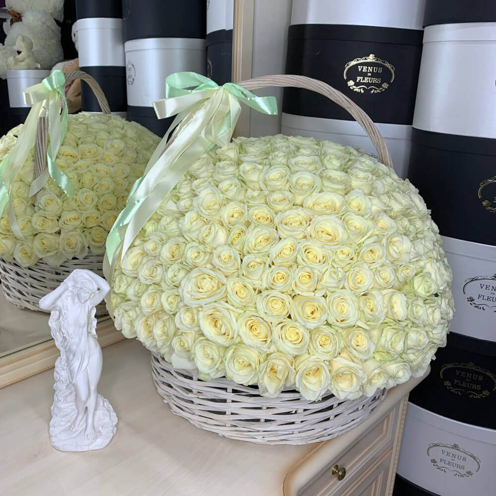 301 белая роза в корзине