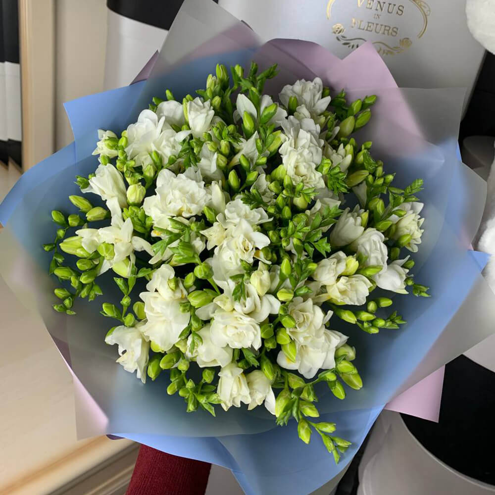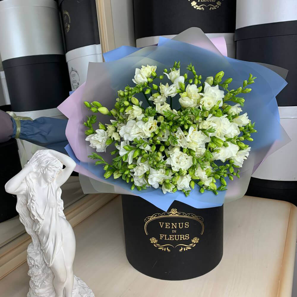 - фирменная транспортировочная коробка, упаковочная пленка, атласные ленты
