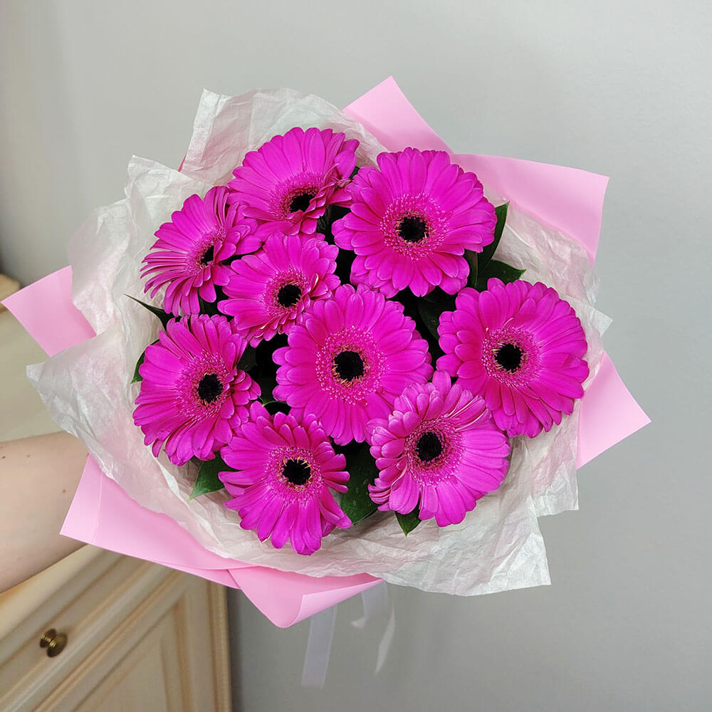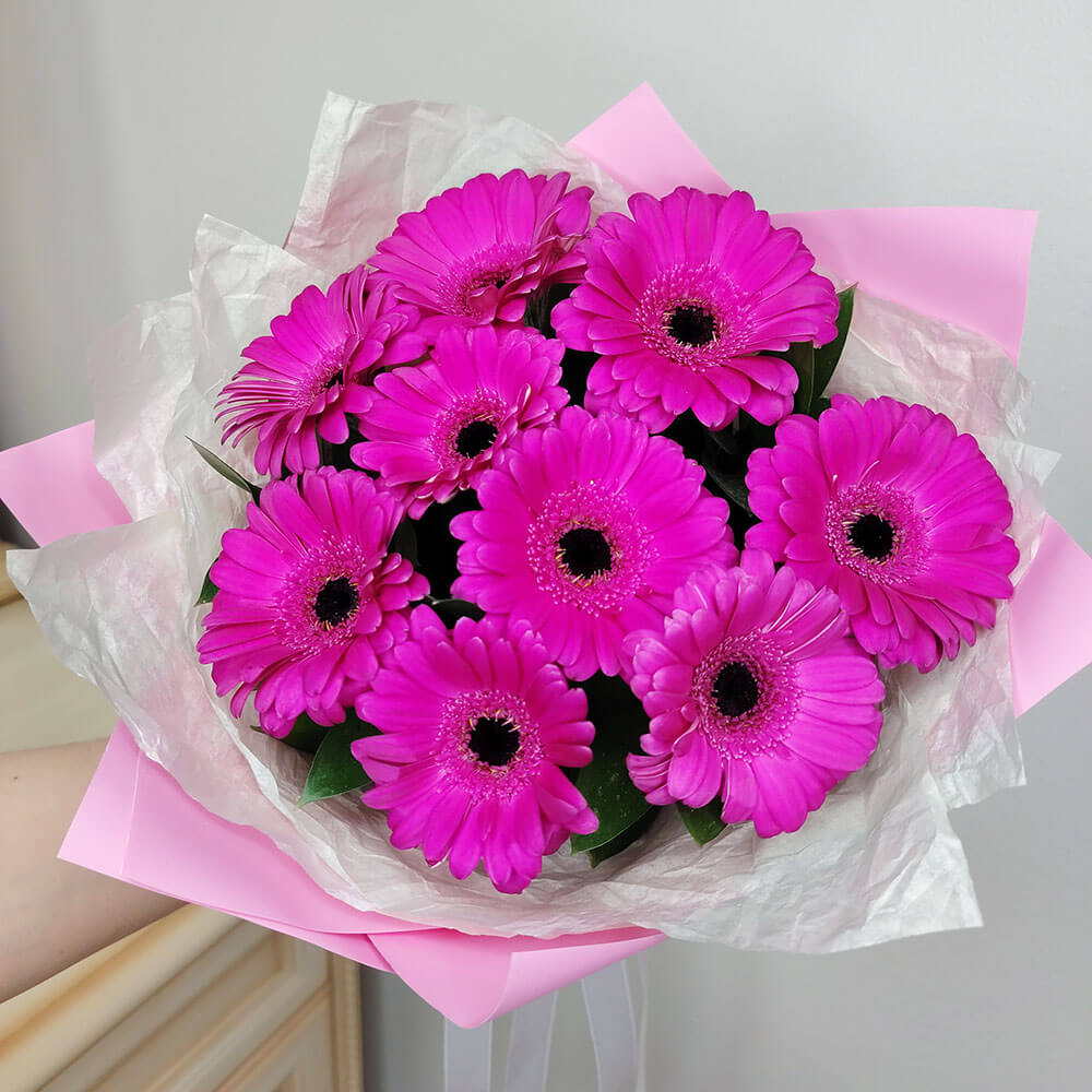 9 ярко-розовых гербер
