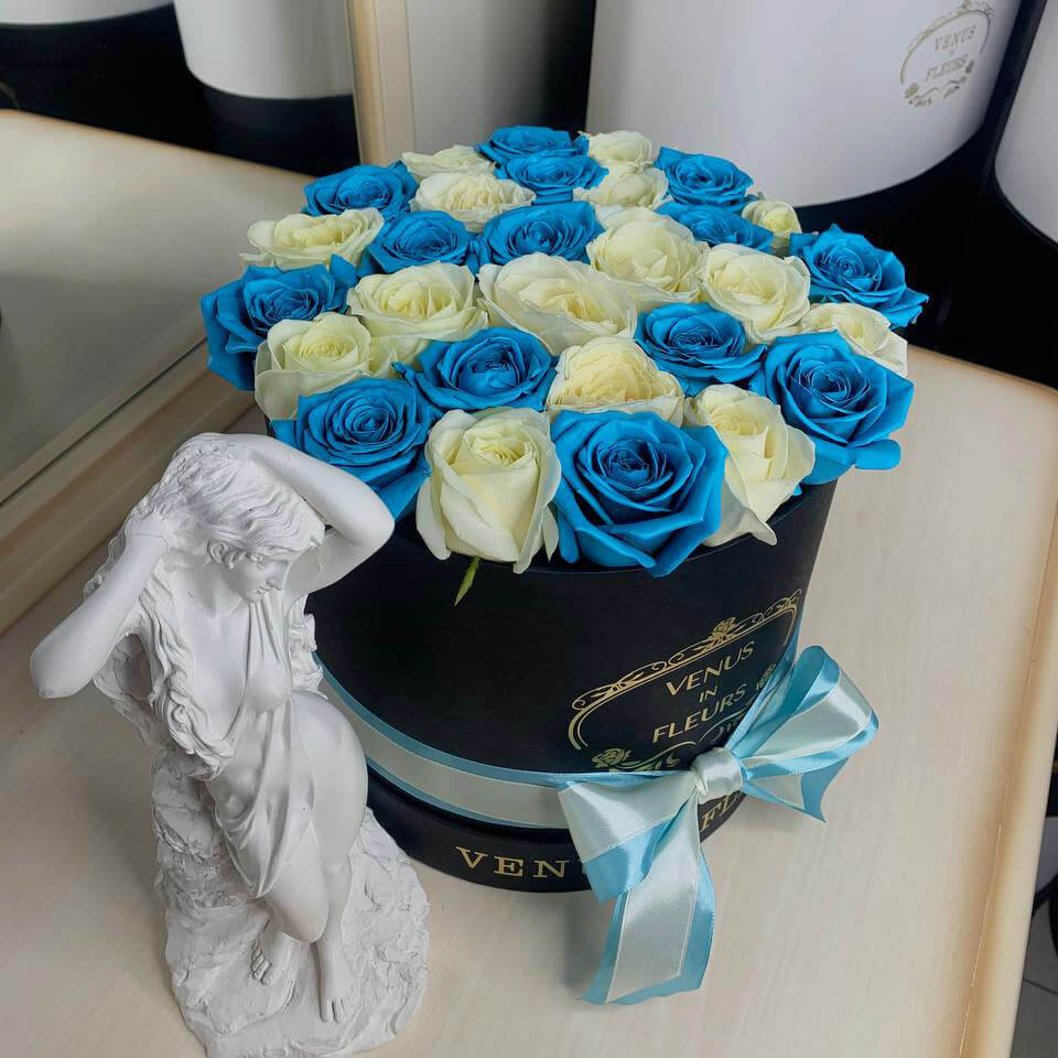 Бело-голубые розы от 19 шт.