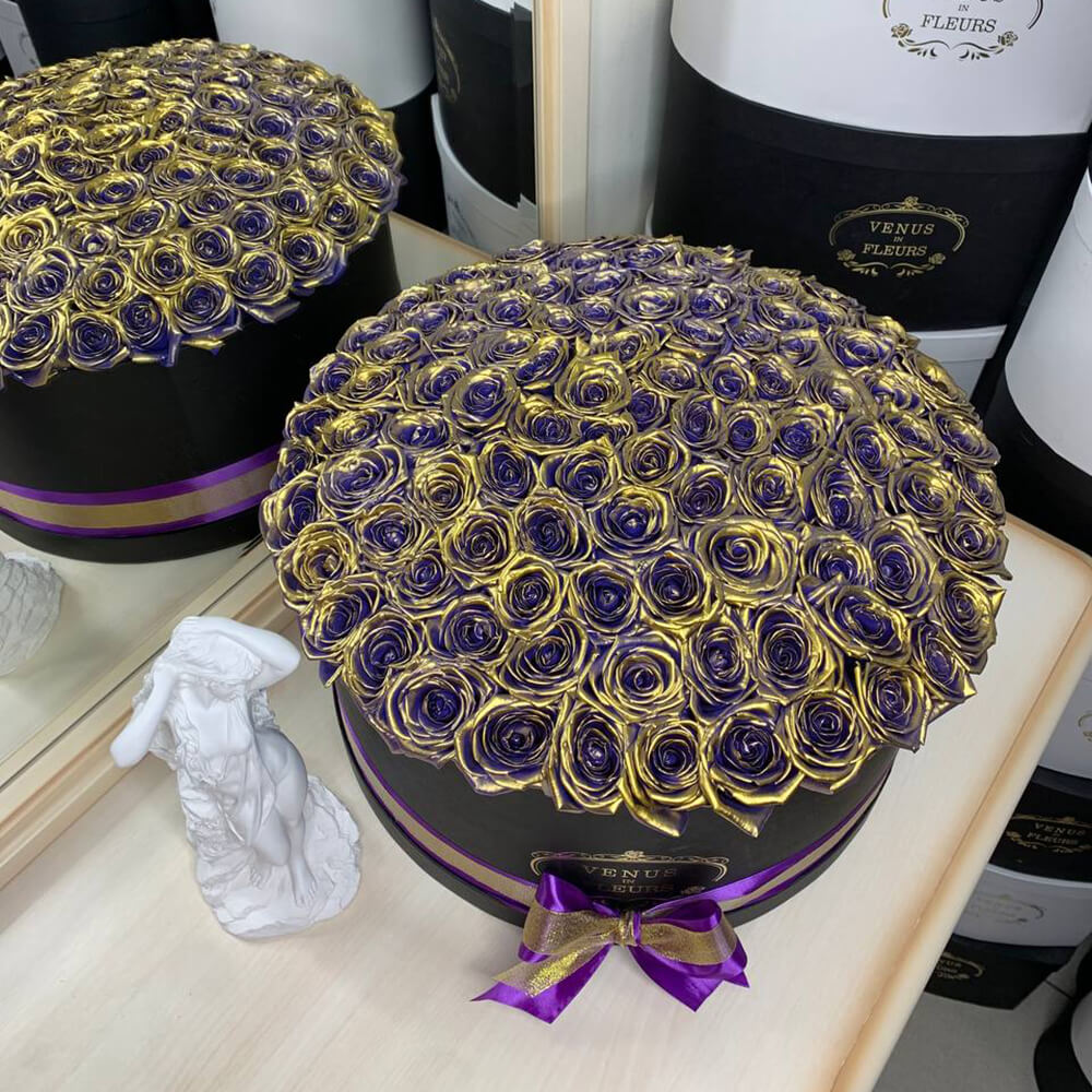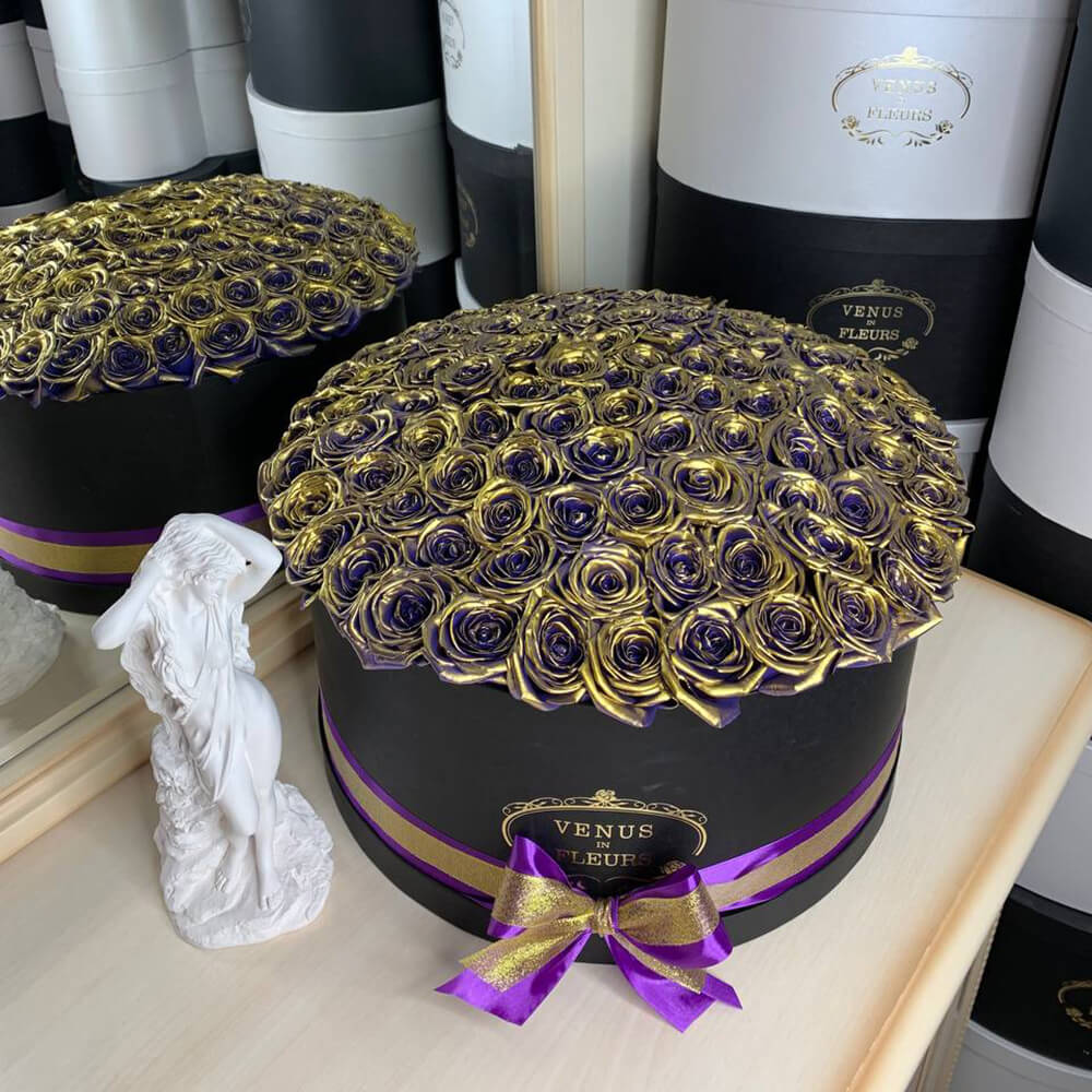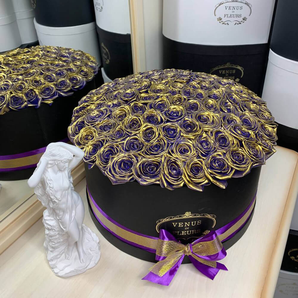 - коробка круглая ручной работы, атласные ленты, флористическая губка