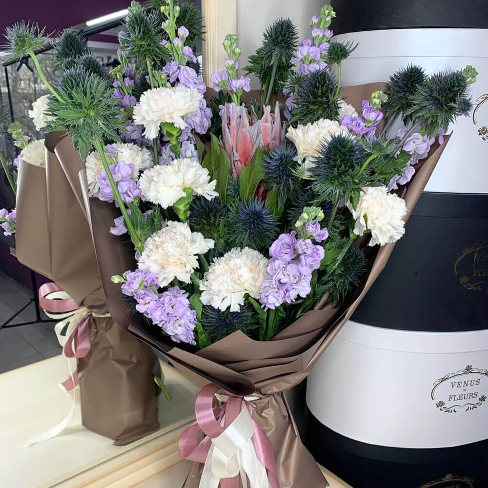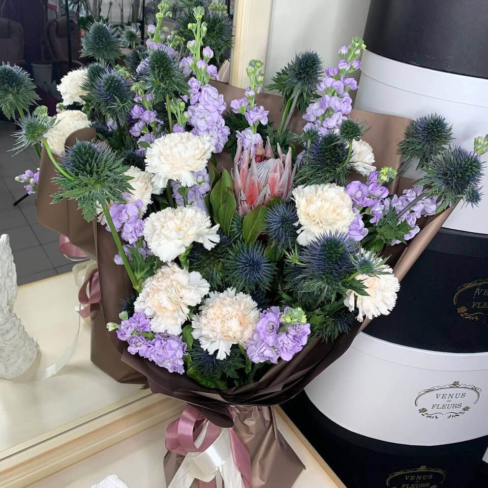 - 1 протея, 10 маттиол, 10 эрингиумов, 10 гвоздик