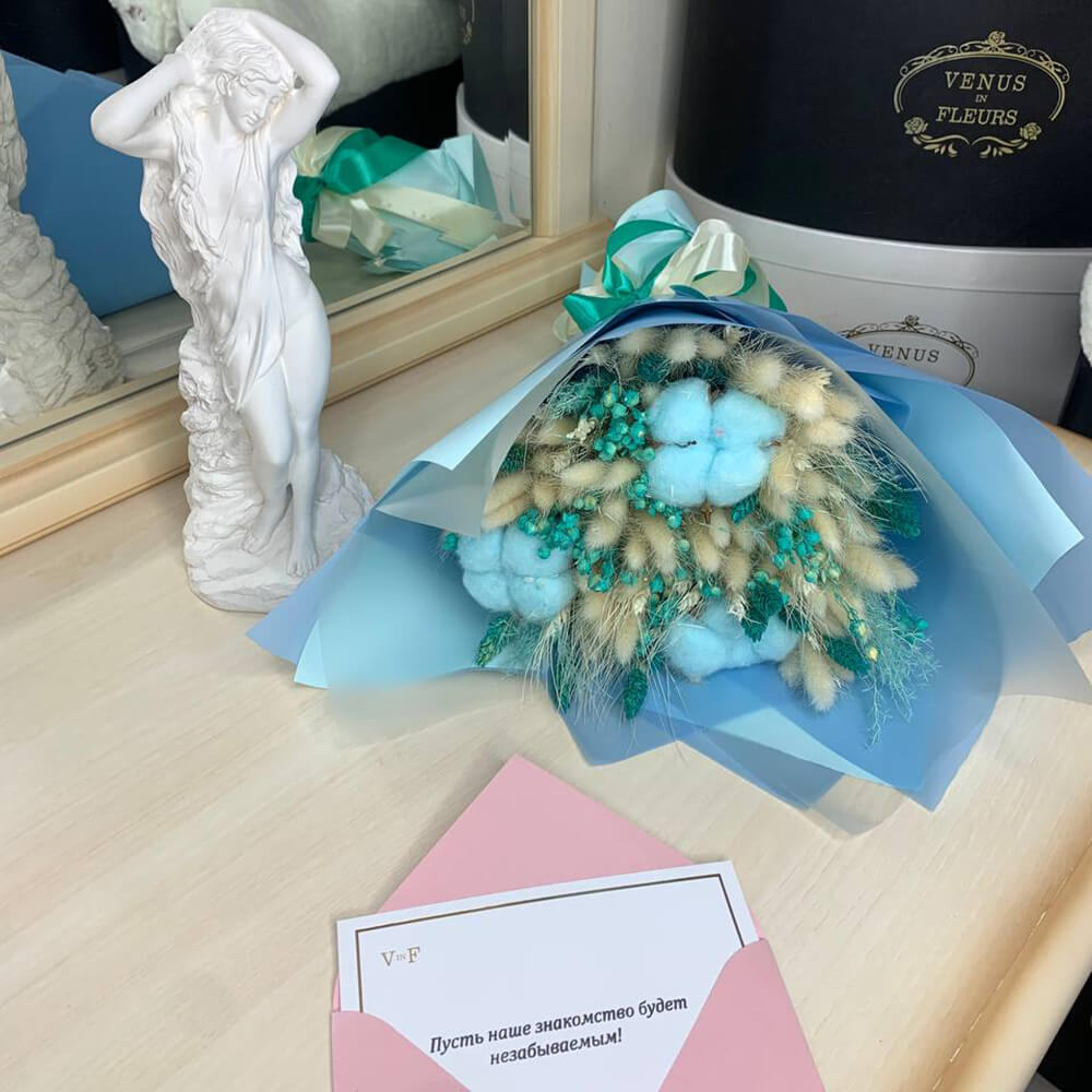 - фирменная транспортировочная коробка, упаковочная пленка, атласные ленты