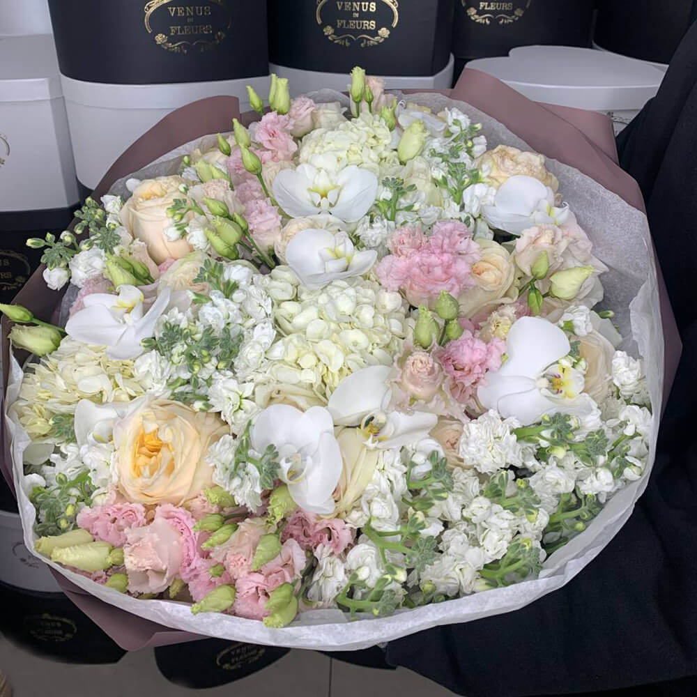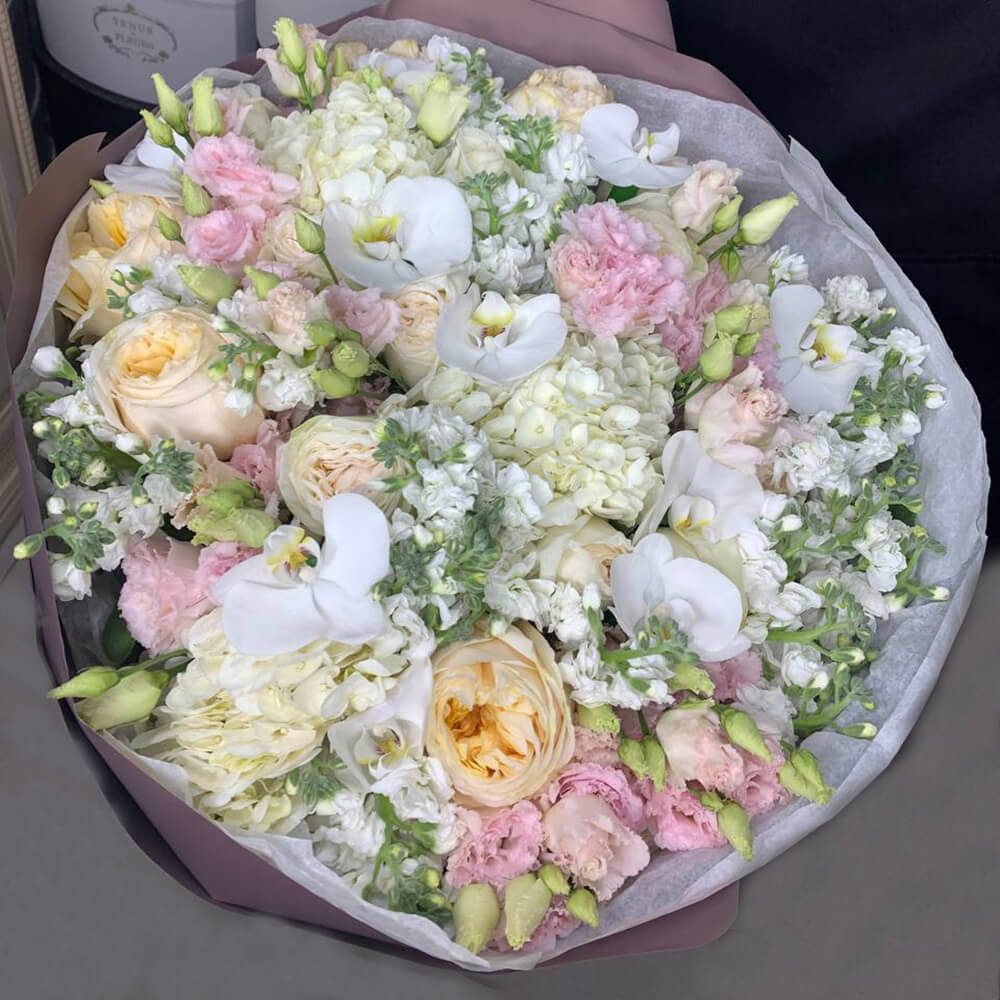 - 23 французские розы, 5 орхидей, 10 маттиол ,3 гортензии, 10 эустом