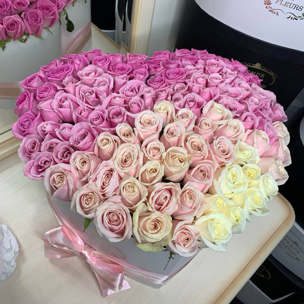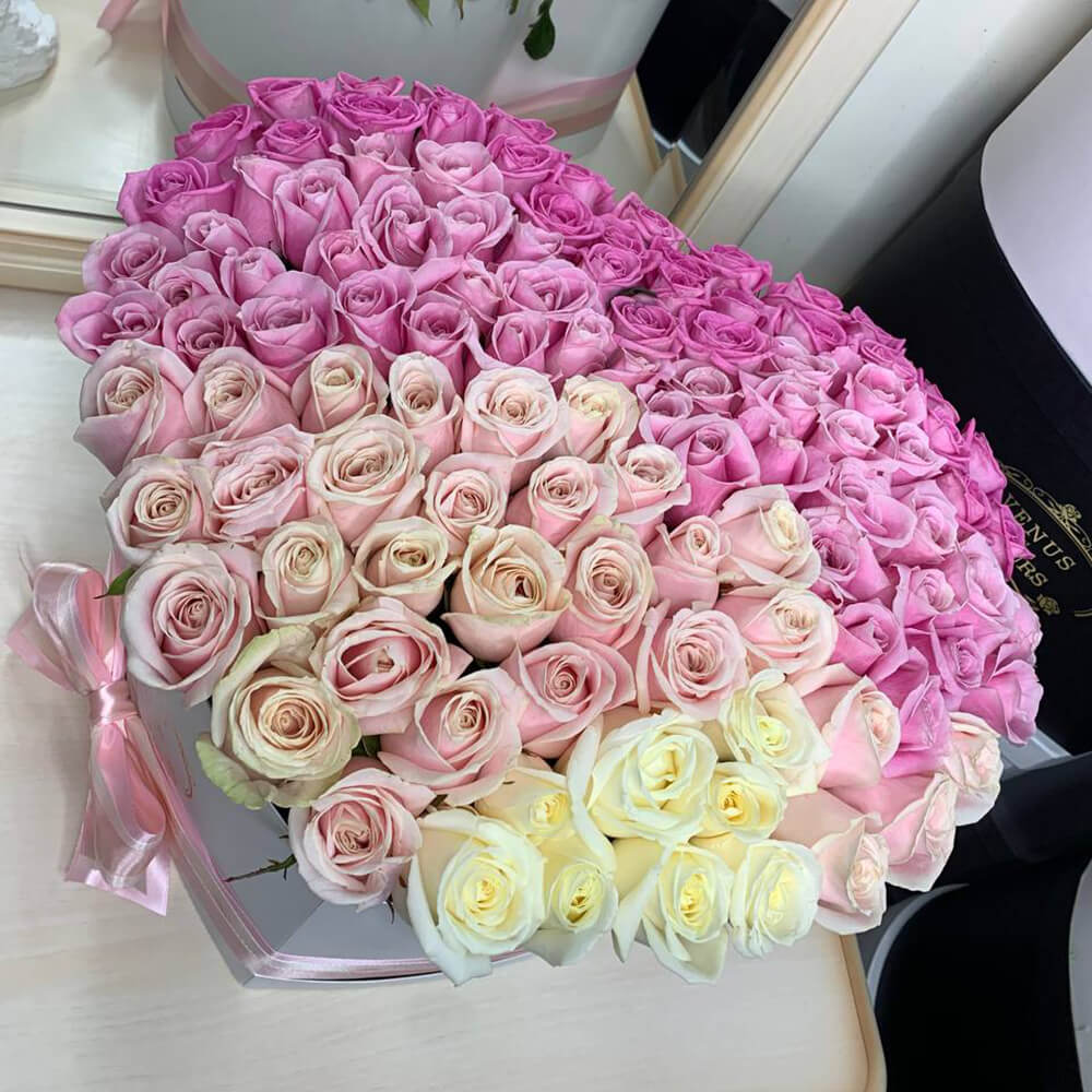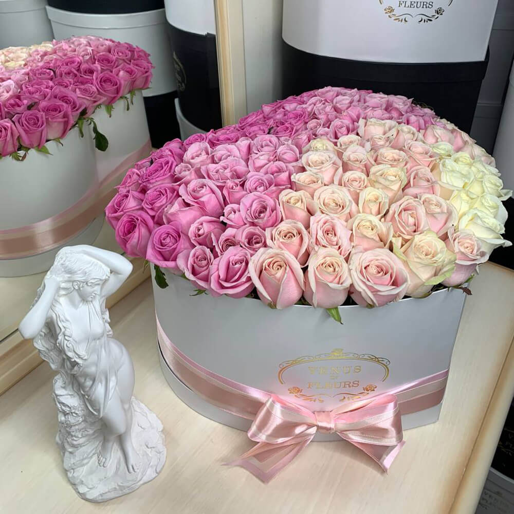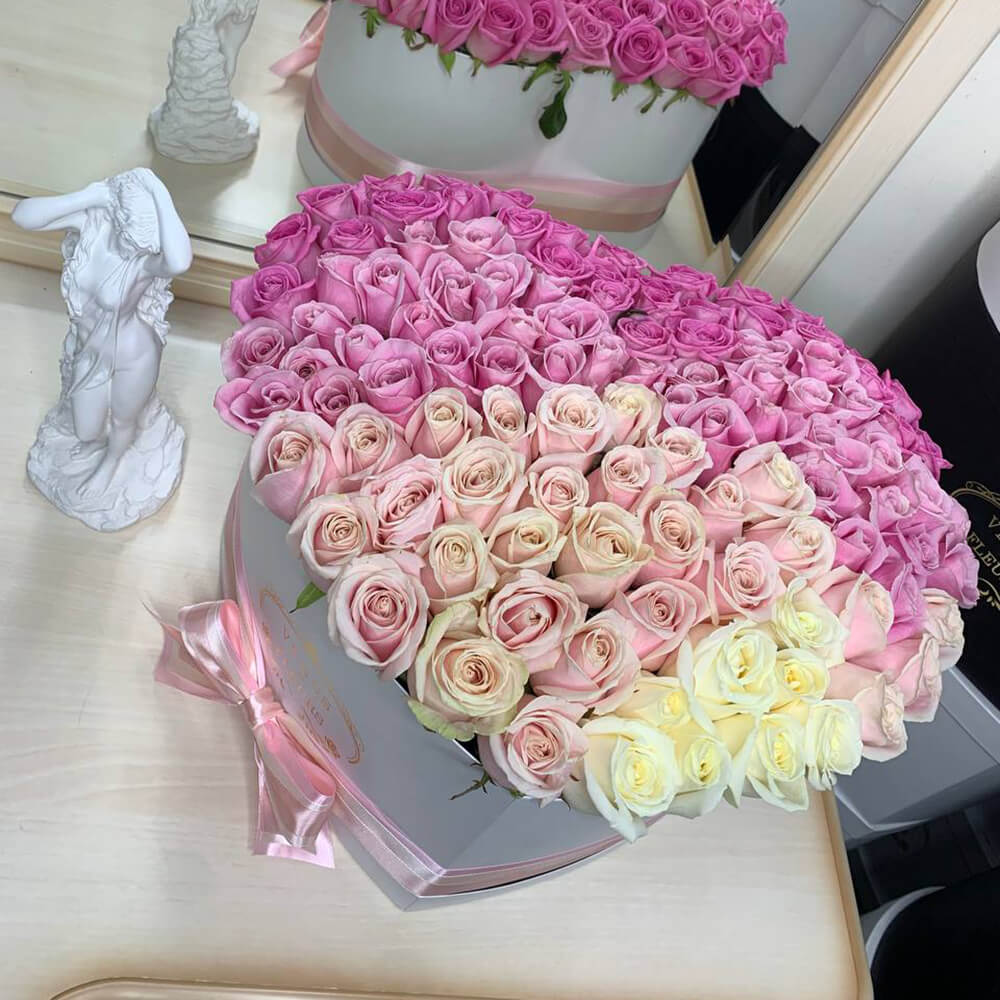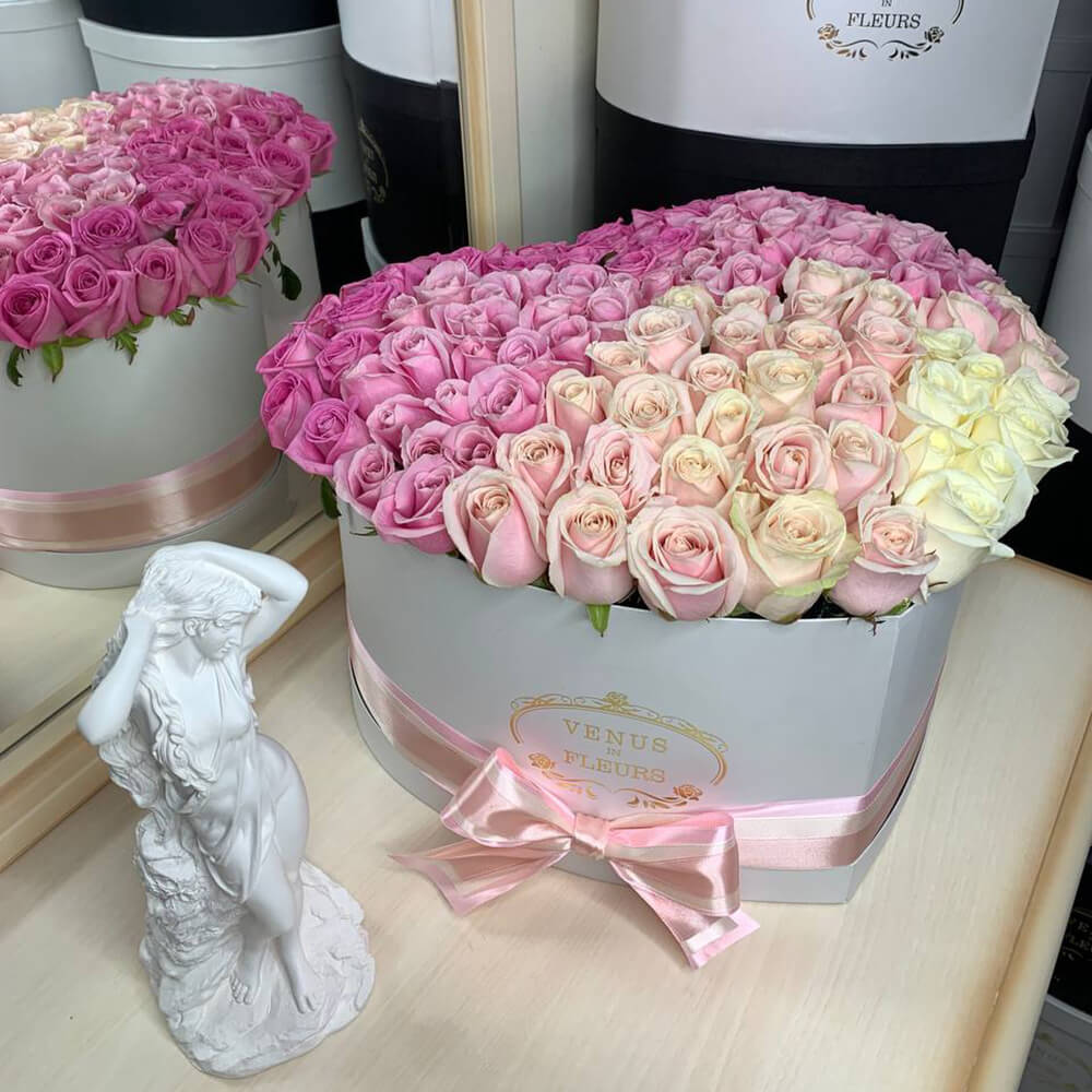 - белая коробка ручной работы, атласные ленты, флористическая губка