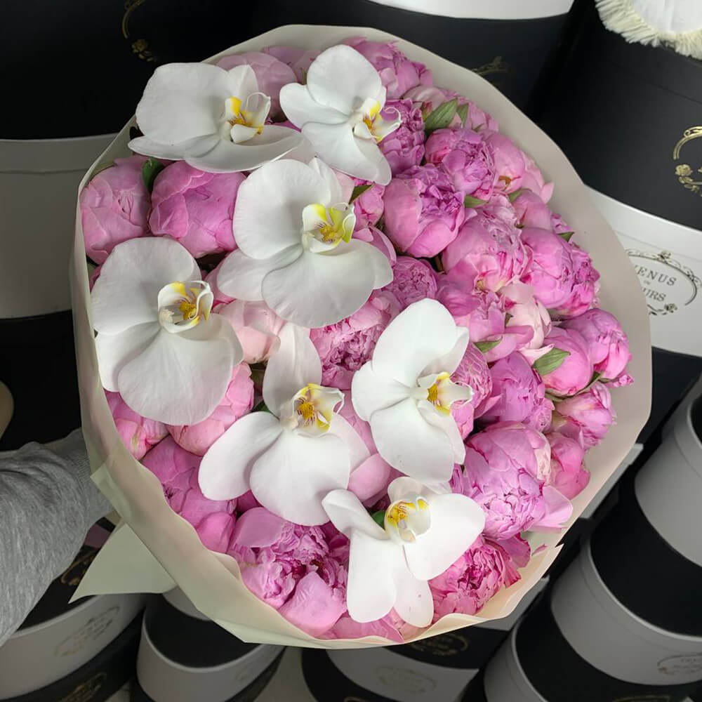- фирменная транспортировочная коробка, упаковочная пленка, атласные ленты