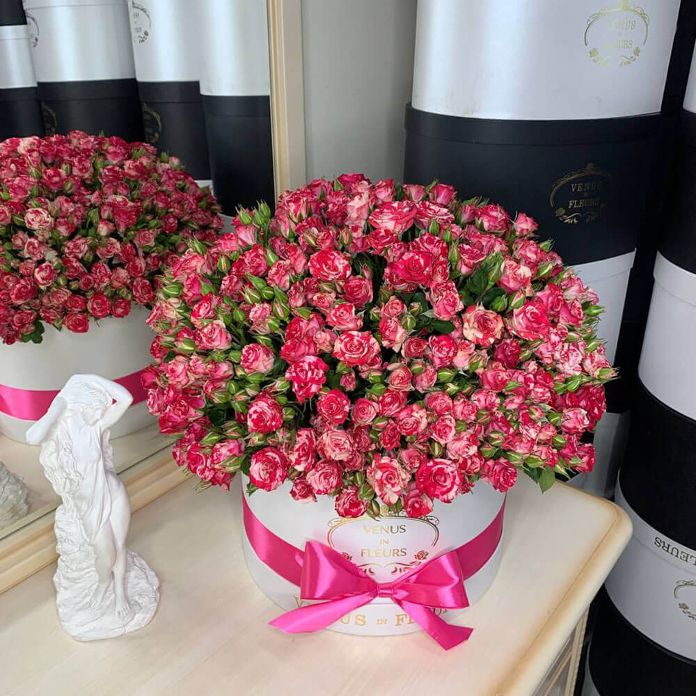 - фирменная транспортировочная коробка, упаковочная пленка, атласные ленты