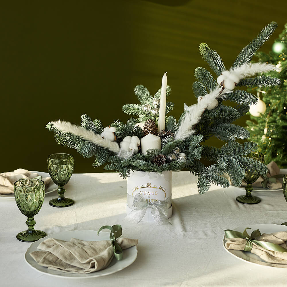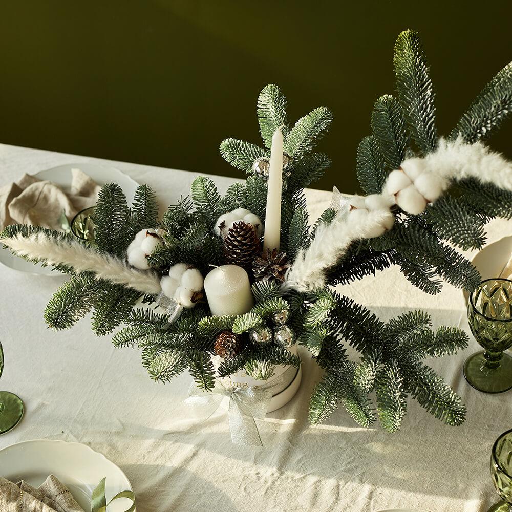 - шишки - 3 шт., хлопок - 5 шт., лагурус - 2 шт., игрушки 2 шт., свечи - 2 шт., нобилис