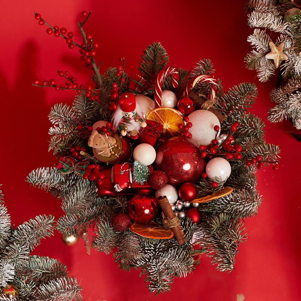 - щелкунчик - 1 шт., машинка - 1 шт., игрушки - 6 шт., корица - 2 шт., рябина - 1 шт., дольки апельсина - 3 шт., нобилис