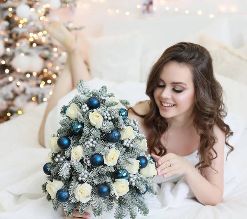 Многие клиенты магазина Venus in Fleurs заказывают цветы и мини-елки в канун Нового года. Достойно выступить на детском конкурсе, удивить делового партнера элегантным VIP-подарком, украсить стол и интерьер дома для праздника — для наших флористов это легко. Мы составляем композиции из отборных веток нобилис, роз, орхидей, хризантем, праздничного декора.