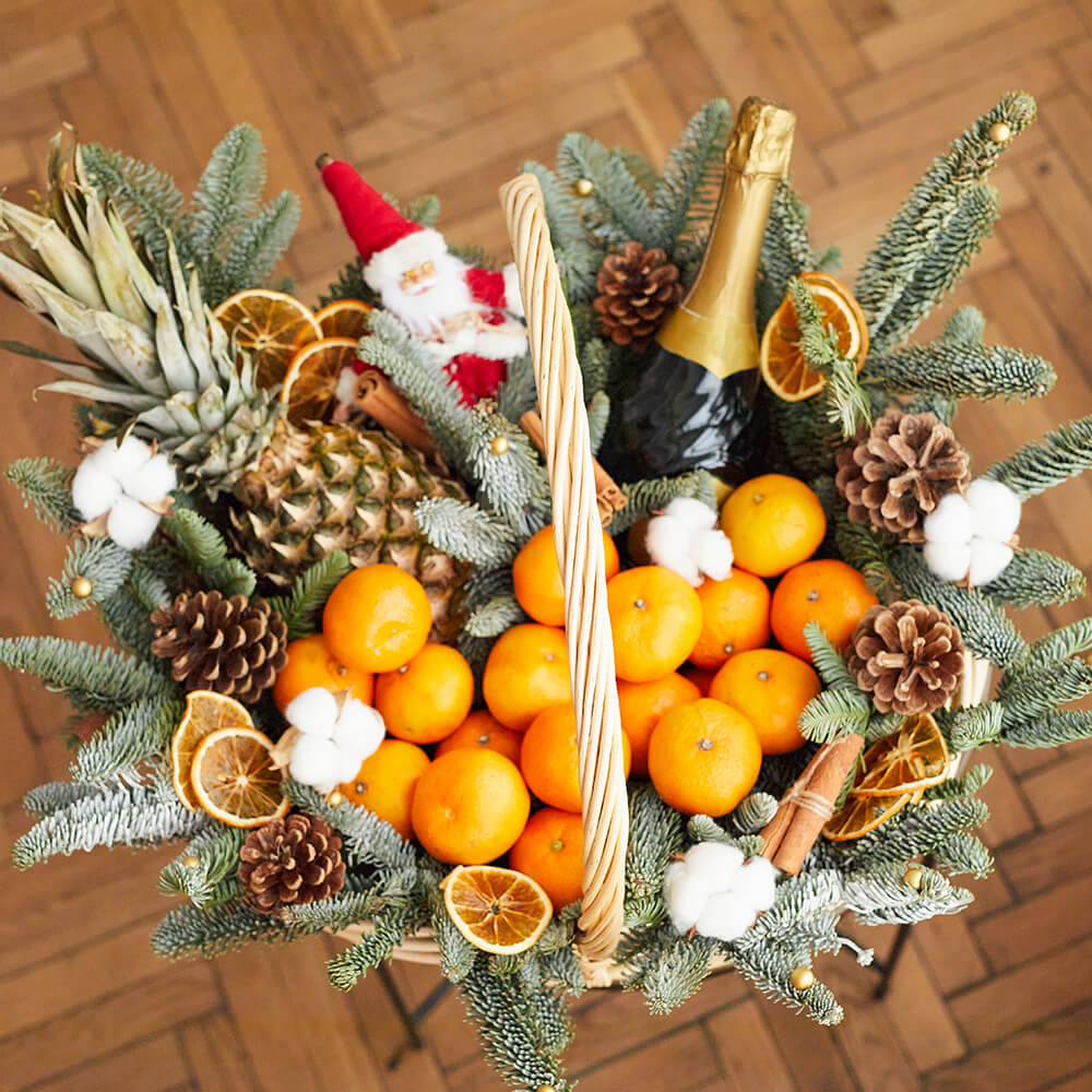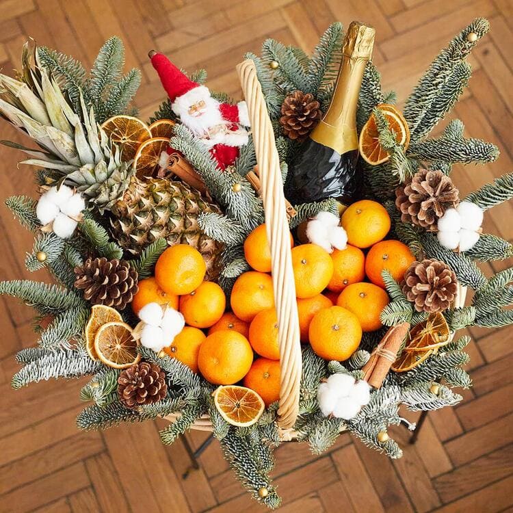 - напиток -1 шт., ананас - 1 шт., хлопок - 5 шт., шишки - 5 шт., корица - 3 шт., мандарины - 20 шт., дед мороз - 1 шт., апельсиновые дольки - 12 шт, нобилис