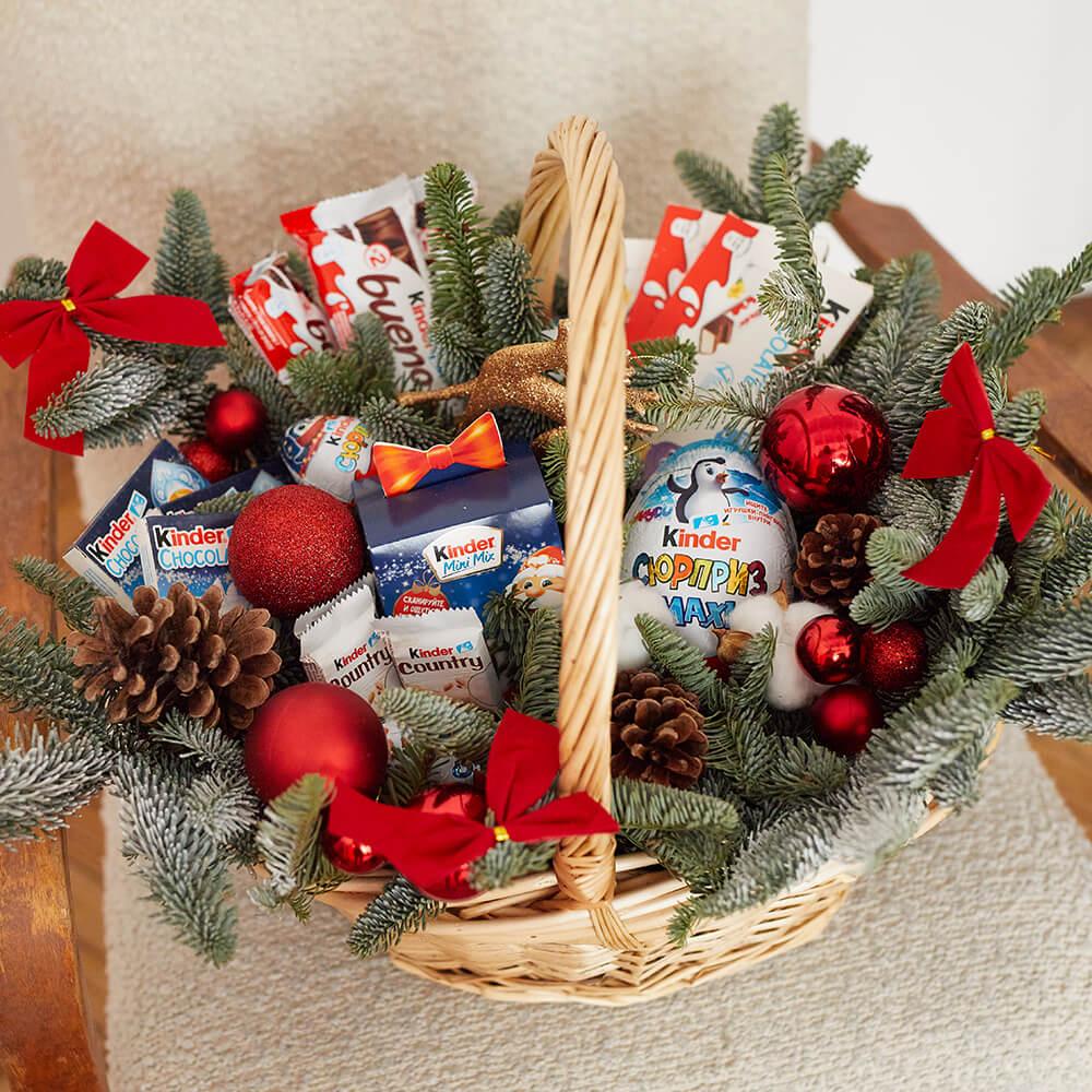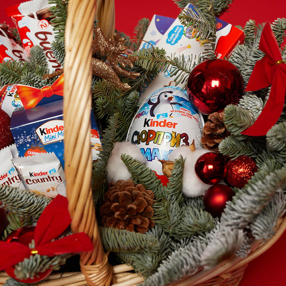 - новогодние игрушки - 3 шт., киндер сюрприз - 3 шт., киндер шоколад - 30 шт., киндер каунтри - 2 шт., шишки - 3 шт., киндер буэно - 3 шт., киндер мини микс - 1 шт., киндер сюрприз макси - 1 шт, нобилис