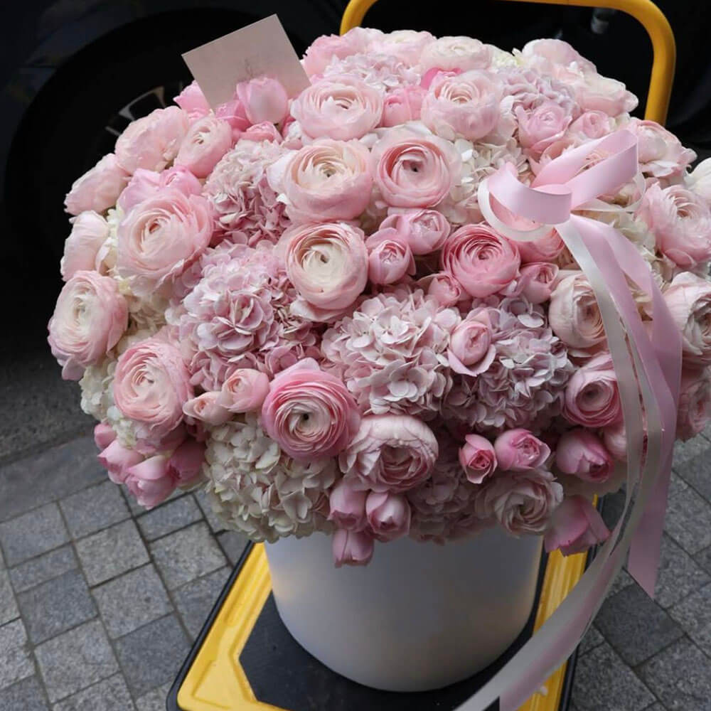Ранункулюсы с гортензиями - 61 шт.
