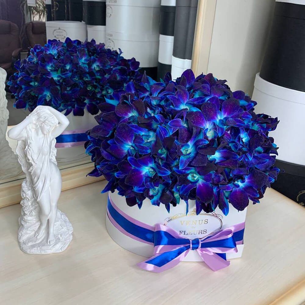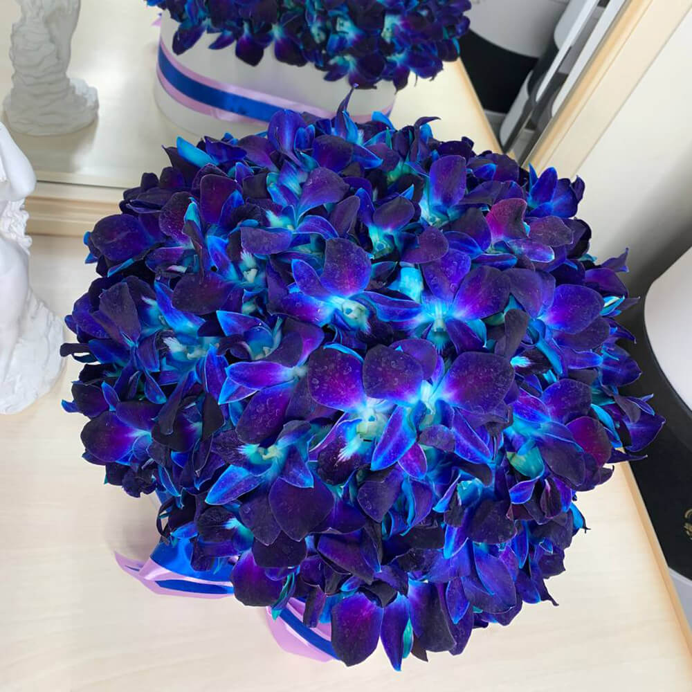 Синие орхидеи в сердце от 51 шт.