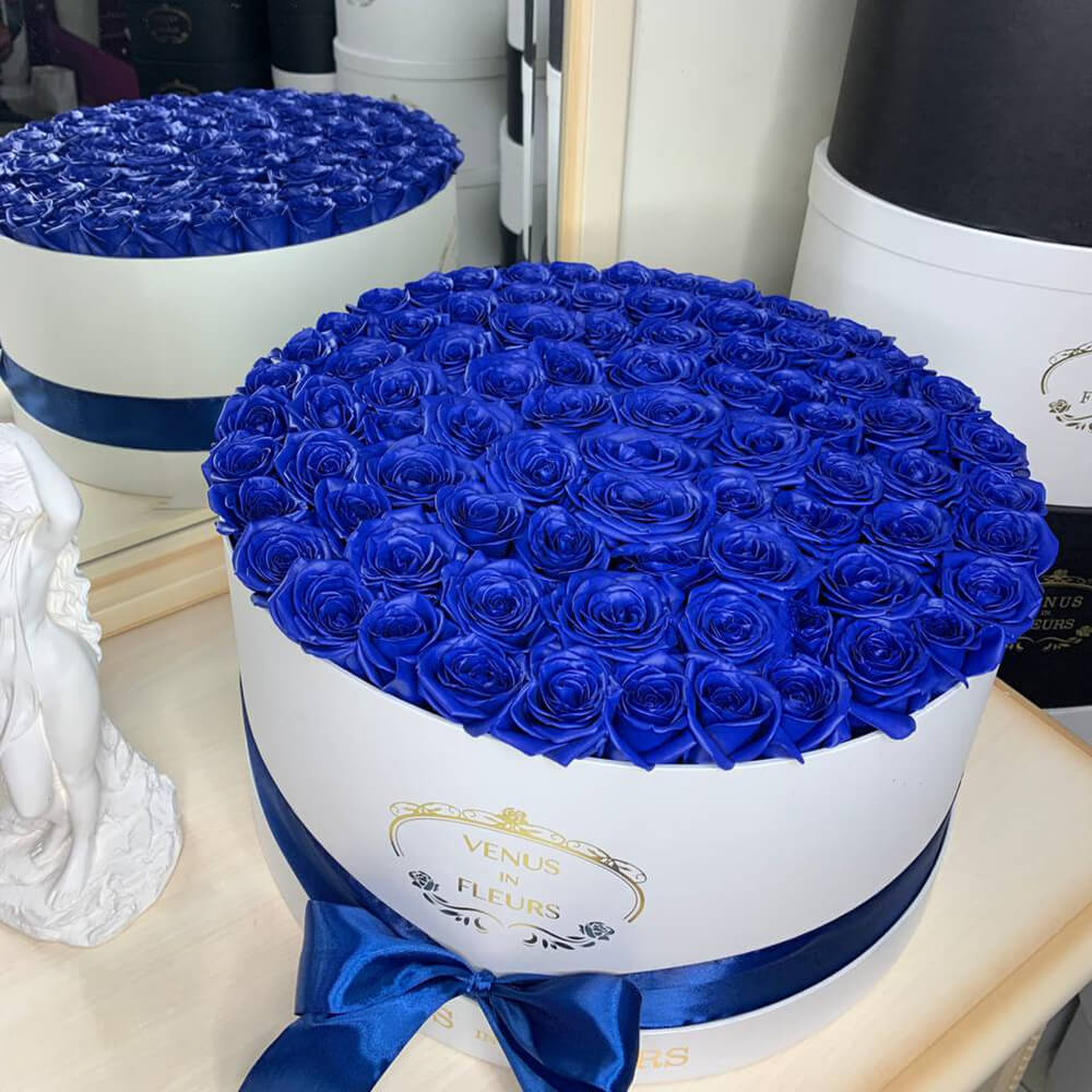 - белая коробка ручной работы, атласные ленты, флористическая губка