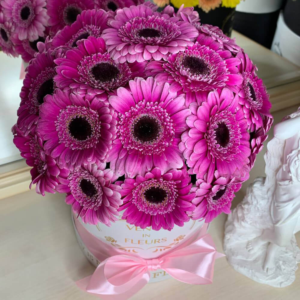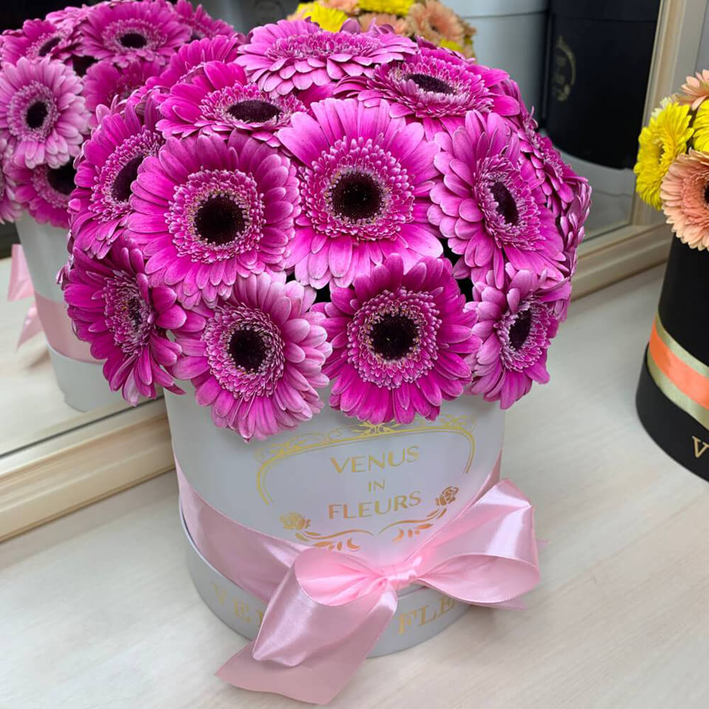 - черная коробка ручной работы, атласные ленты, флористическая губка